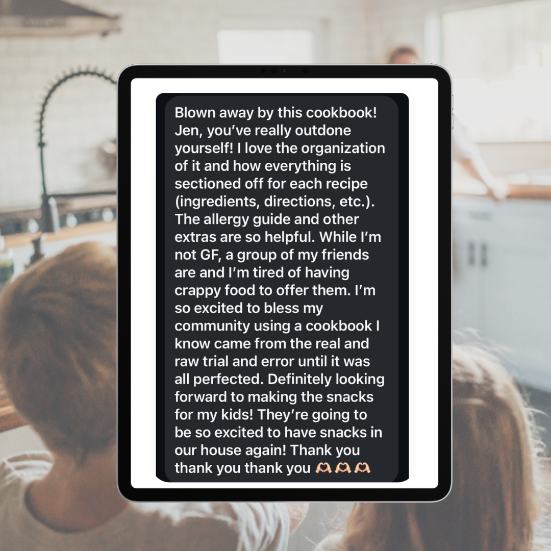 Every recipe is 100% gluten, wheat, seed oil, soy, corn and dye free—plus, there are easy substitutions for dairy, eggs, nuts, and more!