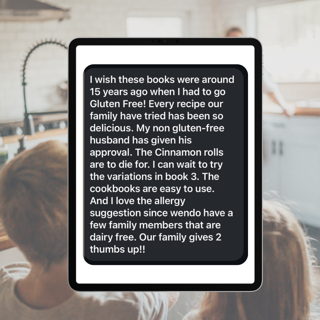Each book contains an allergen guide that shares suggested modifications for common dietary needs like dairy, eggs, oats, etc. that you can find by scrolling down on this page to the Allergen Guide section. Each book also contains an article called “Navigating Cross Contamination” making it an awesome resource for someone who is new or unfamiliar with the places gluten can hide in the kitchen. All of the books contain a grocery list with links to where to buy, psyllium husk guide, ingredients matter break down and links for kitchen gadgets and tools making them very user friendly!