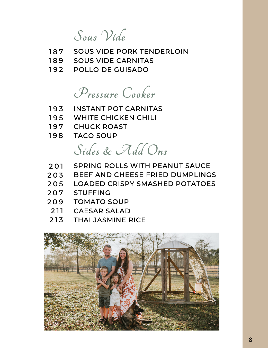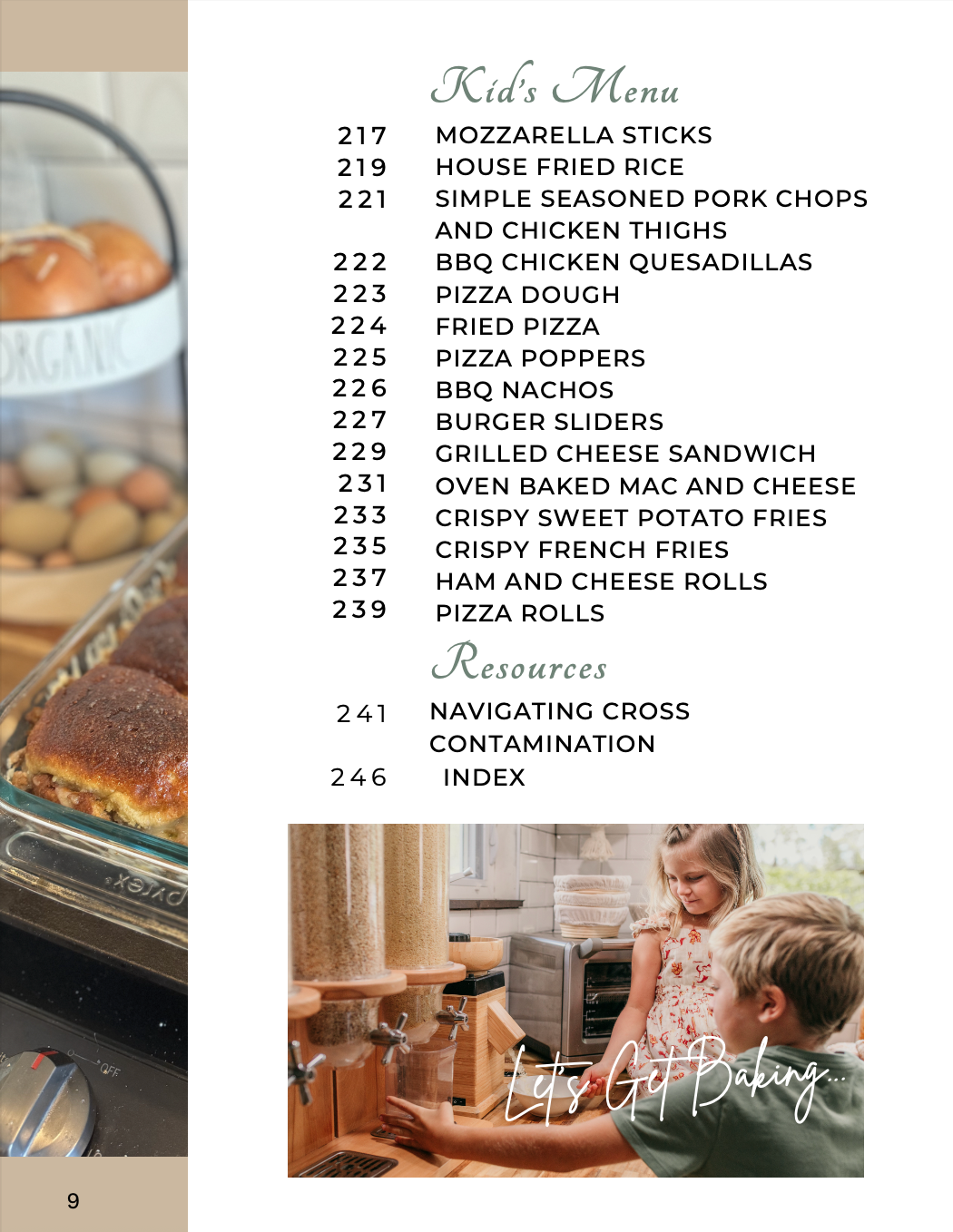 Allergen Guide: Where you can see what modifications are suggested to fit dietary needs. Most recipes can be adapted for egg, dairy, nuts, oats, night shades, etc. Even if you don’t have an immediate need for it, this easy access guide comes in handy when you are preparing food for others with additional allergens.
